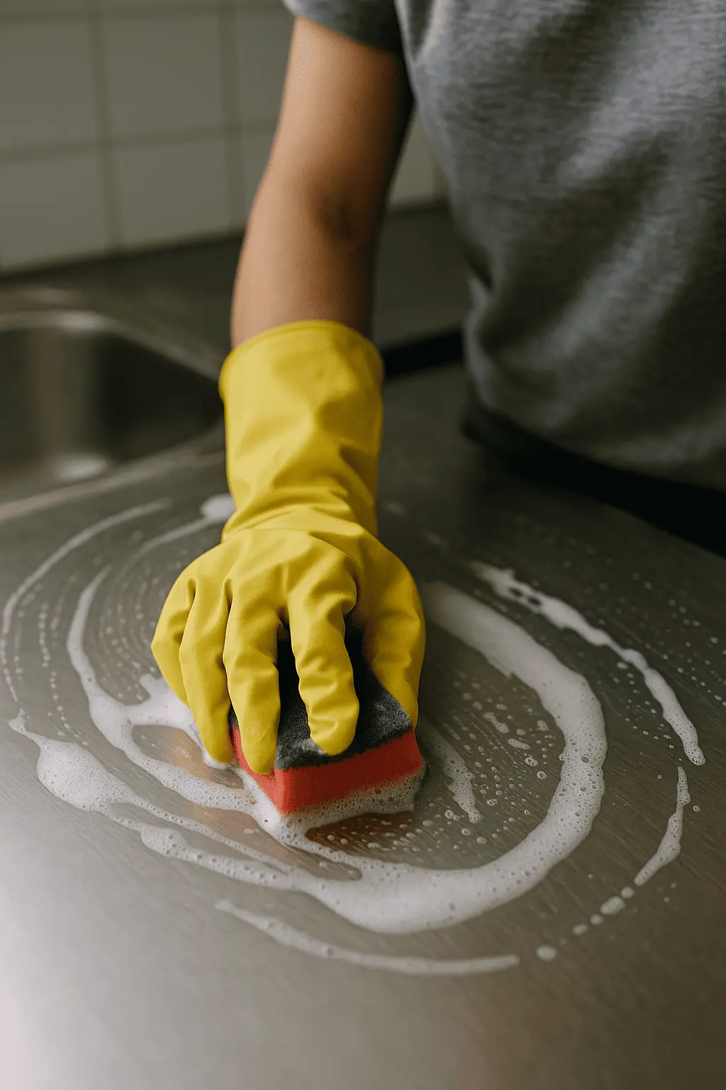 Un cepillo de esponja suave, perfecto para superficies lisas o acero inoxidable sin dañarlas.